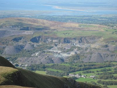 Pen-yr-Orsedd e uma pedreira de ardosia no vale de Nantlle no Pais de Gales, com multiplos fossosde escavacao conectados por ferrovias de bitola estreita em diferentes niveis de elevacao. O local e marcado por paredes rochosas íngremes e niveis terraceados que refletem anos de trabalho de extracao continua.