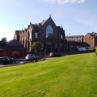 A Igreja Paroquial de Santo André ergue-se na Hamilton Place com paredes de pedra e vitrais característicos.