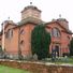 A Igreja de São Tiago apresenta planta quadrada com quatro torreões de canto coroados com cúpulas, construída em tijolo vermelho neoclássico.