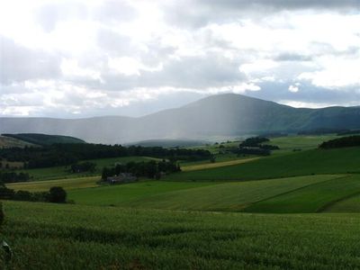 Morven eleva-se a 871 metros na borda oriental das Cairngorms, dominando as terras agrícolas de Cromar em direção ao leste.
