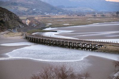 A Pont Briwet atravessa o estuário do rio Dwyryd com extensão de 120 metros, conectando as comunidades de Penrhyndeudraeth e Talsarnau.