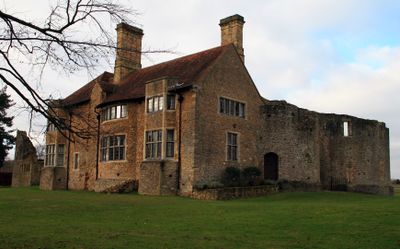 O portal de duas torres do Castelo de Leybourne apresenta dois bastiões semicirculares incorporados em uma fazenda do período Tudor.