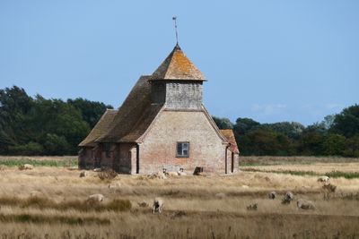 Church of St Thomas A Becket and mounting block attached, church in Fairfield, Kent, UK