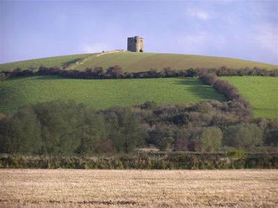 Burt Castle, Castelo medieval em colina sobre Lough Swilly, Condado de Donegal, Irlanda.