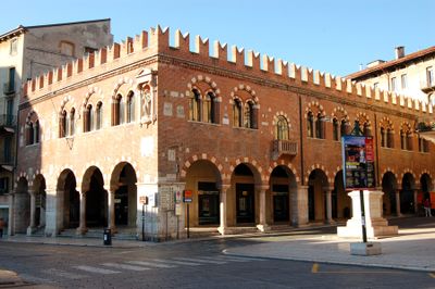 O edificio funcionava como ponto de encontro para a comunidade mercantil de Verona, onde comerciantes conduziam negcios e resolviam disputas. Hoje, os visitantes podem observar a fachada da praca e compreender a importancia que este espaco teve para a vida economica da cidade.