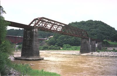 A estrutura serve tanto para transporte ferroviário quanto para acesso de pedestres, conectando comunidades dos dois lados do Rio Kiso através de faixas designadas.