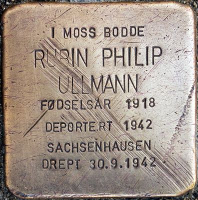 Stolperstein em memória de Rubin Philip Ullmann, stolperstein in Moss, Noorwegen