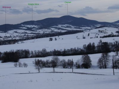 As encostas ocidentais acima de Wiśniowa contêm um prado que se tornou um ponto de decolagem para paraquedistas. Este ponto de vista surpreendente oferece vistas amplas das montanhas circundantes.