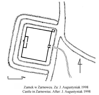 Castle Żarnowcu é uma ruína de fortaleza medieval em Żarnowiec que originalmente formava uma estrutura retangular de 105 por 125 metros com torres de canto e um edifício residencial. O complexo foi construído em calcário e tijolo, cercado por um fosso cheio de água alimentado pelo rio Pilica próximo.