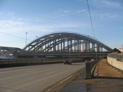 Cinco pontes ferroviárias paralelas cruzam o Canal Obvodny, conectando a Estação Principal de São Petersburgo com a linha ferroviária em direção a Moscou.