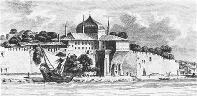 Uma gravura do seculo 18 do artista Choiseul-Gouffier mostra como este edificio parecia em sua forma anterior a mudancas posteriores. Essa imagem historica permite aos visitantes imaginar como a estrutura original parecia perto da agua.