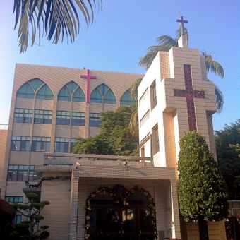 Os serviços dominicais acontecem às 9h00 em taiwanês e às 10h30 em mandarim no número 2, Seção 1, Rua Zhongshan.