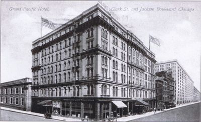 Construído em 1873 após o Grande Incêndio de Chicago, o Grand Pacific Hotel custou um milhão e meio de dólares e substituiu o antigo Pacific Hotel.
