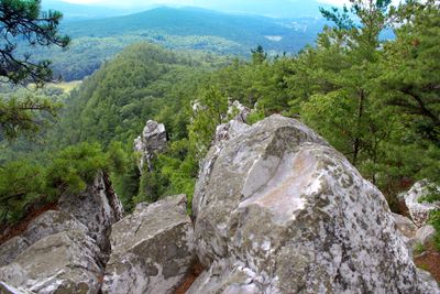 Um pilar de pedra independente chamado Devil's Pulpit se eleva perto do pico e oferece vistas inesperadas que em dias claros podem se estender por quatro estados. Esta formação rochosa isolada surpreende muitos visitantes enquanto exploram a crista.
