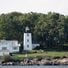 O Farol Hospital Point Range Front tem 13,5 metros de altura com uma torre de tijolos brancos e uma lanterna de dez lados no final da Avenida Bayview.