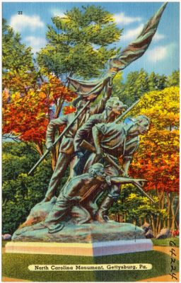 O monumento mostra soldados em posicoes de combate e homenageia o papel das unidades da Carolina do Norte durante a batalha. Os visitantes podem vivenciar aqui a historia dos regimentos do estado e entender como foi importante sua participacao no conflito.
