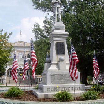 As Filhas Unidas da Confederação instalaram este monumento em 1908, permanecendo na praça central até sua realocação em 2020.