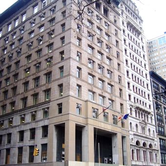 Localizado ao lado do City Hall Park, o edifício comercial contém os primeiros elevadores elétricos encomendados por Frank J. Sprague.