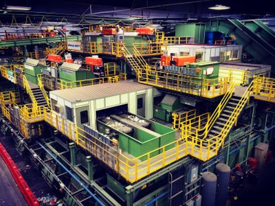 A Sunset Park Material Recovery Facility e um centro de reciclagem localizado na orla aquatica do Brooklyn, equipado com predios de processamento, areas de armazenamento e tecnologias avancadas de classificacao para metais, vidro e plasticos. O local utiliza sistemas de classificacao mecanica e optica para separar e preparar materiais destinados a serem transformados em novos produtos.