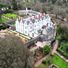 A mansão elisabetana apresenta um pátio em forma de D cercado por fortificações medievais com paredes de dois metros de espessura.
