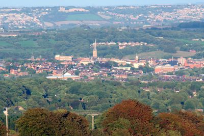 Chesterfield é uma cidade de mercado em Derbyshire posicionada onde os rios Rother e Hipper se encontram, criando um centro natural para comércio e habitação. A cidade se estende pela paisagem de Derbyshire com zonas residenciais e comerciais distintas conectadas por esses cursos d'água.