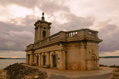 A Antiga Igreja de São Mateus ergue-se das águas de Rutland Water com elementos arquitetônicos clássicos, incluindo uma torre em estilo coríntio e um pórtico em sua entrada ocidental. A estrutura conecta-se à margem através de uma barragem, tornando-a acessível a pé quando os níveis da água permitem.