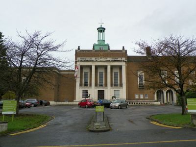 Forecourt To County Hall Including Bas Relief Drum, Lamp Posts, Boundary Marker, architectural structure in Hertford, East Hertfordshire, Hertfordshire, UK
