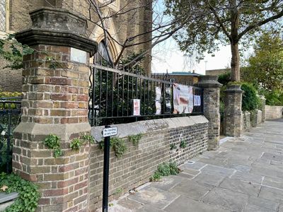 Walls Around Churchyard Of St Peter, With Gates, wall in Hackney, Greater London, UK