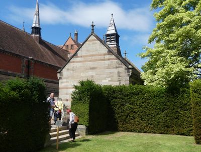 Retaining walls to pond containing equestrian statue of Hugh Lupus