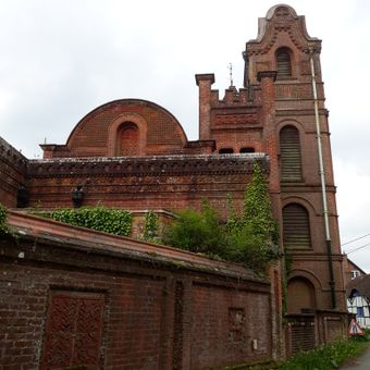 Farringdon Church of England Primary School and Village Hall é um edifício de tijolos vermelhos que abriga uma escola primária e um salão da aldeia, com elementos arquitetônicos vitorianos e detalhes de terracota. A estrutura combina salas de aula para alunos com um espaço para eventos equipado com cozinha e estacionamento.