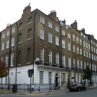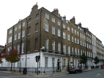 Os edifícios 110 e 112 de Harley Street são estruturas georgianas de quatro andares com trabalhos em gesso realizados por Thomas Collins em 1777.