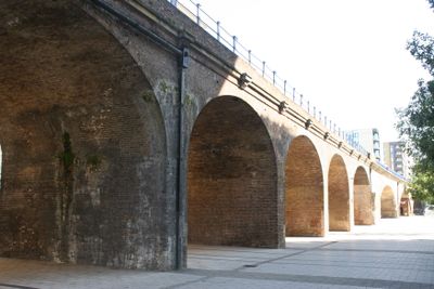 Railway Viaduct To North Of Regents Canal Dock, railway viaduct in Tower Hamlets, Greater London, UK