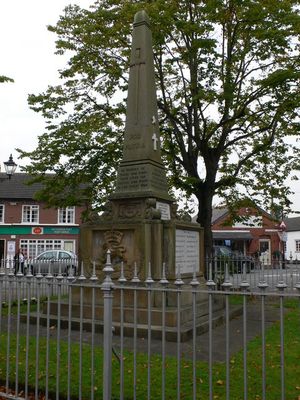 Holt War Memorial , Wrexham, Grade II listed building in Wrexham County Borough. Situated at the junction of Castle Street, Church Street and Frog Lane at the former Market Place. Set within a square enclosure surrounded by cast iron railings