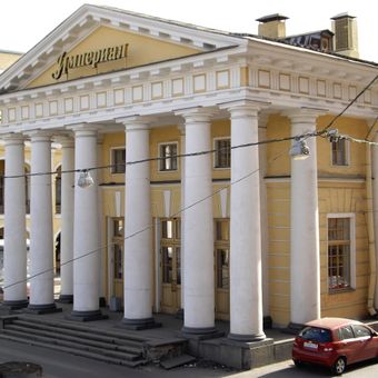 Este edifício mantém seu design clássico original através de uma reconstrução completa, demonstrando o compromisso de São Petersburgo com a preservação arquitetônica.