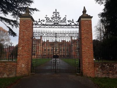 Gates, Overthrow And Gatepiers Approximately 80 Metres To South Of Shaw House School, gate in Shaw cum Donnington, West Berkshire, Berkshire, UK