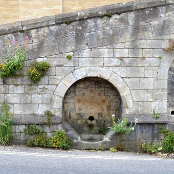 Ramped Path To Right At South End Of Well Path Wall In Front Of Builder's Yard, architectural structure in Bradford-on-Avon, Wiltshire, UK