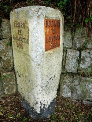 Milestone Opposite April Cottage, milestone in St. Enoder, Cornwall, UK