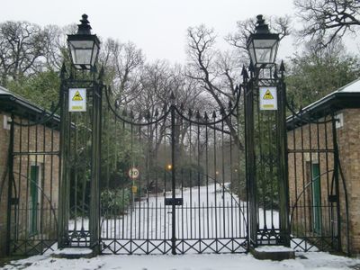 Pair Of Lodges And Gates To The South East Of Bushy House, gate in Richmond upon Thames, Greater London, UK