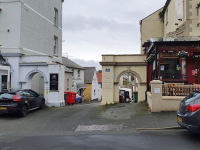 Arch attached to NW corner of No.3 at entrance to Vardre Lane, Grade II listed building in Conwy County Borough. Attached to The Parade Public House