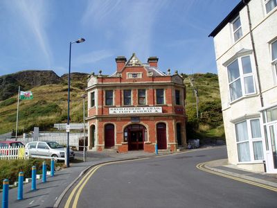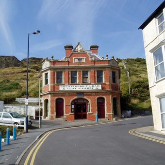 Cliff Railway House, Cliff Terrace, Grade II listed building in Ceredigion. At the bottom of the terrace, facing down Queen's Road; the railway rises up Constitution Hill which forms the northern termination of the Promenade