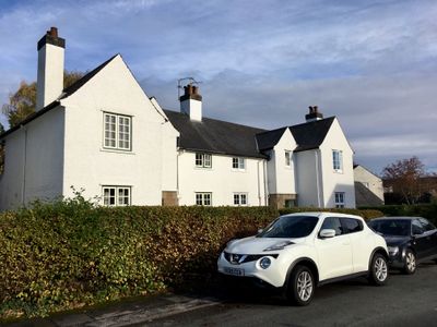 Nos. 15 & 16 Y Groes, Grade II listed building in City and County of Cardiff. At the downhill (S) corner of the far side (E) of the Green