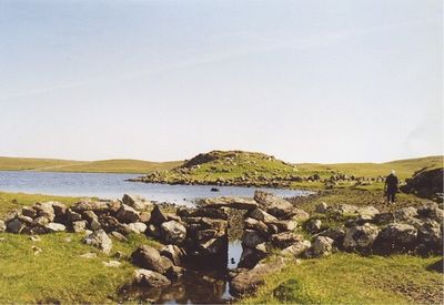 Loch of Houlland, broch, Villians of Ure, broch in Shetland Islands, Scotland, UK