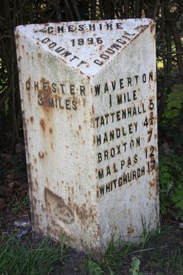 Milepost, Rowton Moor, milepost in Rowton, Chester, UK