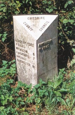 Milepost, N of Redes Mere; S of Capesthorne Park, milepost in Siddington, Macclesfield, UK