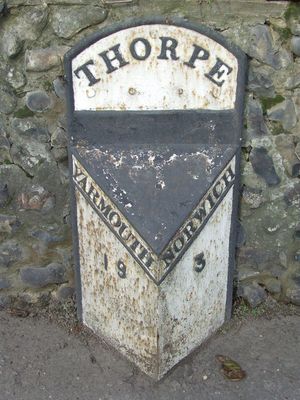 Milepost, 50yds E of bridge, milepost in Thorpe St Andrew, Broadland, UK