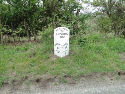 Milestone, N of crossroads for Uggeshall, milestone in Brampton With Stoven, Waveney, UK