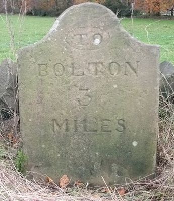 Milestone, Smithills Dean Road, by No. 93 - about 1/4 N from the A58 Ring Road Moss Bank Way