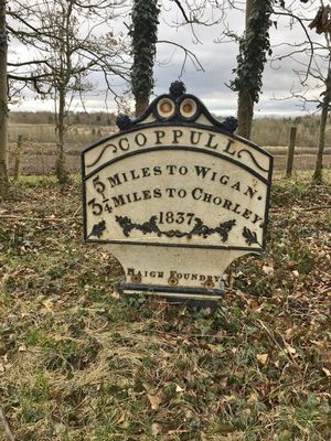 Milepost, Coppull Brow Farm; by farm, milepost in Coppull, Chorley, UK