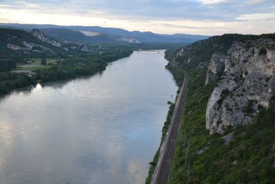 O Défilé de Donzère estende-se por 3,3 quilômetros ao longo do rio Ródano, com penhascos calcários que alcançam alturas entre 40 e 110 metros.