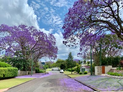 Jacaranda Walk é uma avenida de árvores em Brisbane com fileiras de Jacarandas com flores roxas que formam um arco natural acima da rua. Durante a estação de floração, essas árvores criam longos corredores coloridos que se estendem por vários quarteirões da cidade.